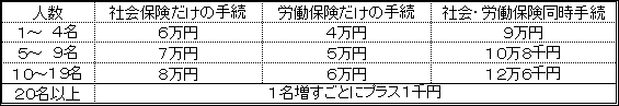 たまさき社労士事務所 料金表(源泉前の金額)